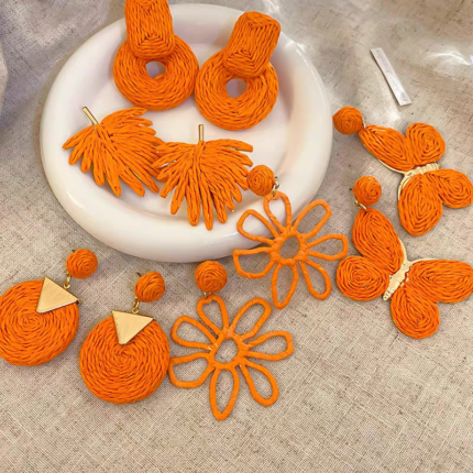 • Boucles d'oreilles en raphia tressé Boucles d'oreilles en raphia tressé 15,00 €  –  18,00 €Plage de prix : 15,00 € à 18,00 €