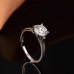 Cette sublime bague en moissanite allie modernité et classicisme, parfaite pour sublimer vos tenues quotidiennes comme vos occasions spéciales.
