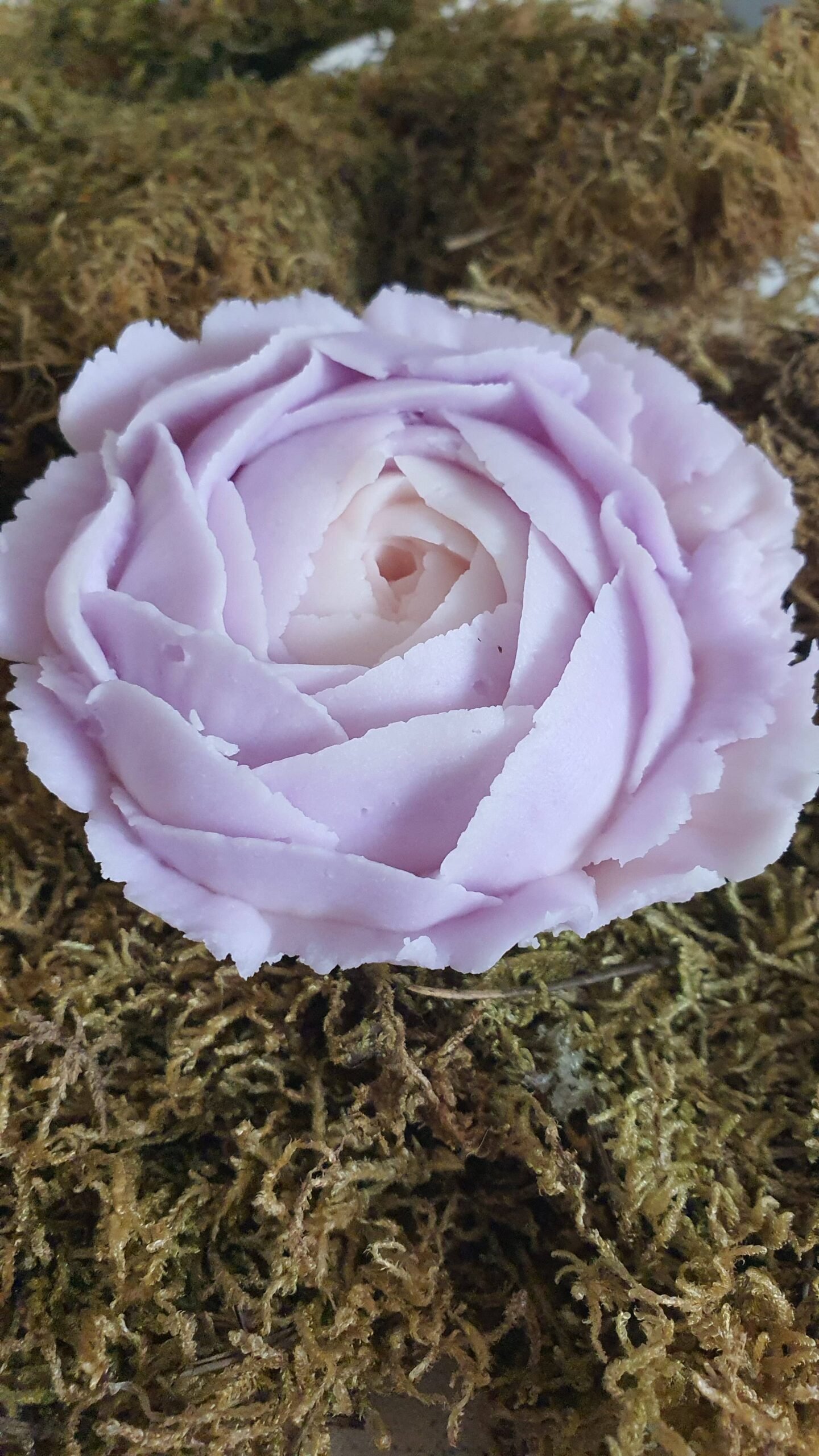 je réalise cette fleur à la main sans moule, pour vous offrir un fondant ou une bougie parfumé et unique.