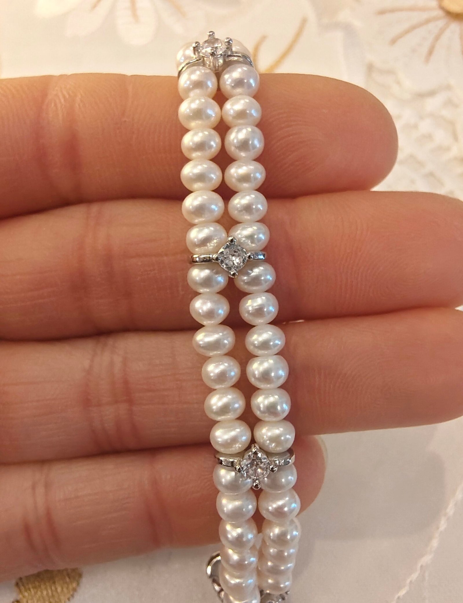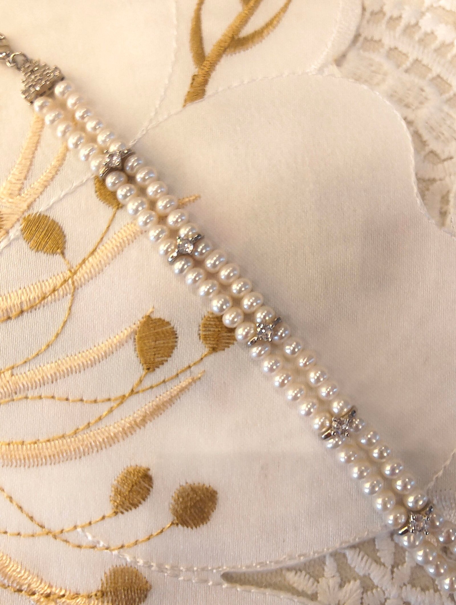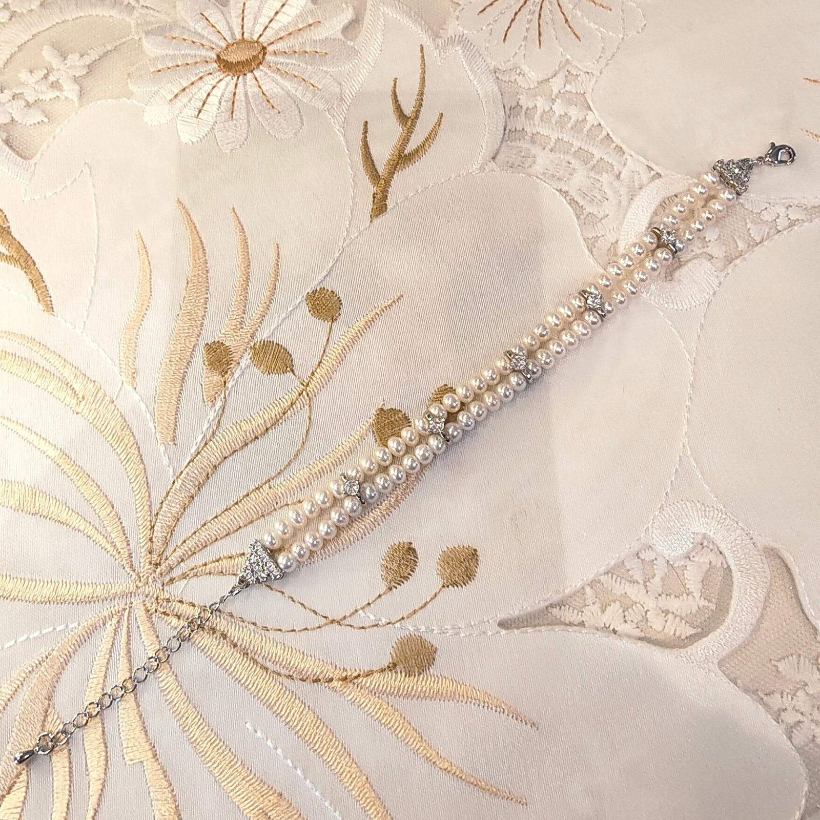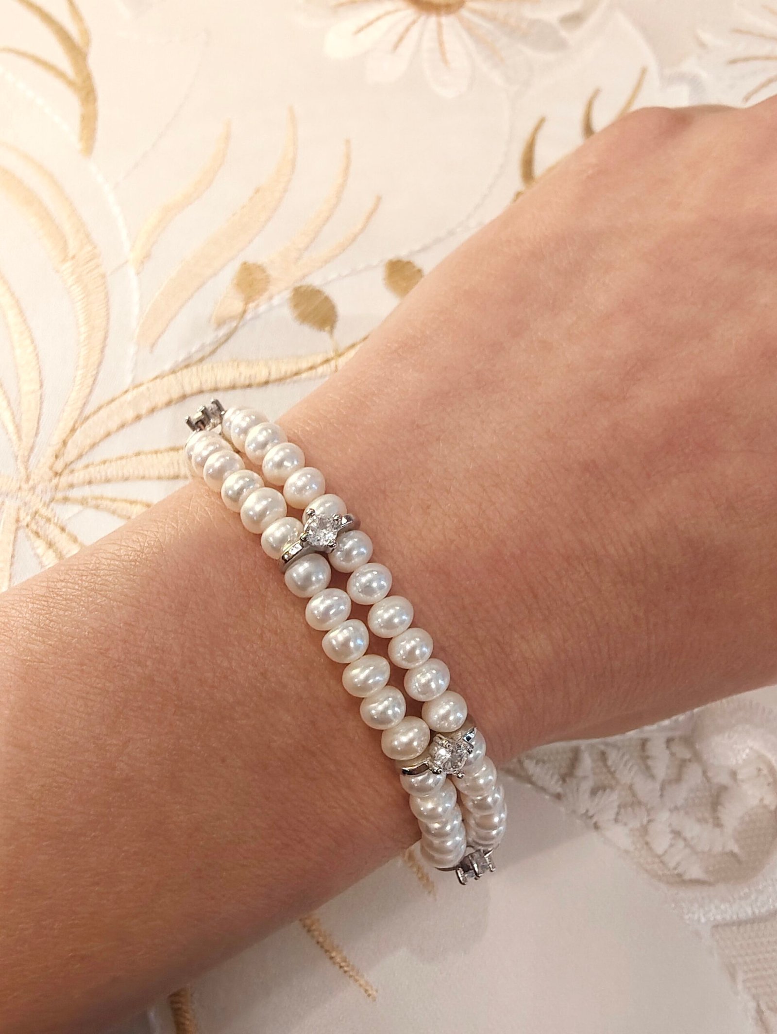Composé de petites perles d'eau douce, ce bracelet en double rangs offre des possibilités de porté infinies pour s'adapter à chaque occasion.
