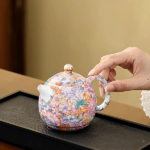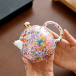 - Émail peint en relief : Motifs floraux en trois dimensions et reliefs délicats rehaussés de couleurs émaillées vibrantes.