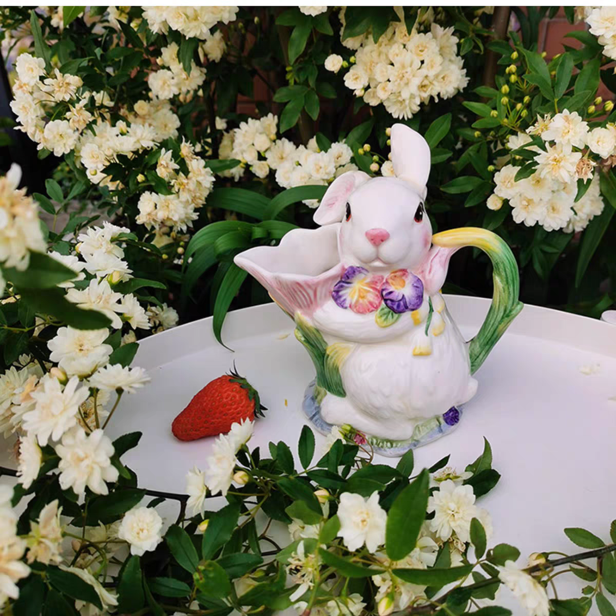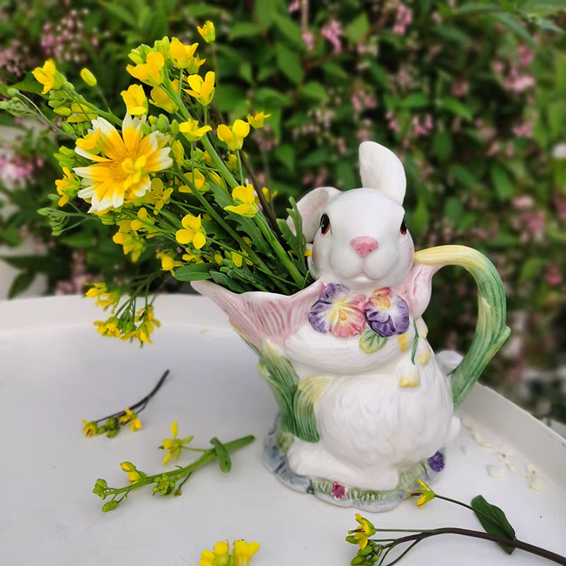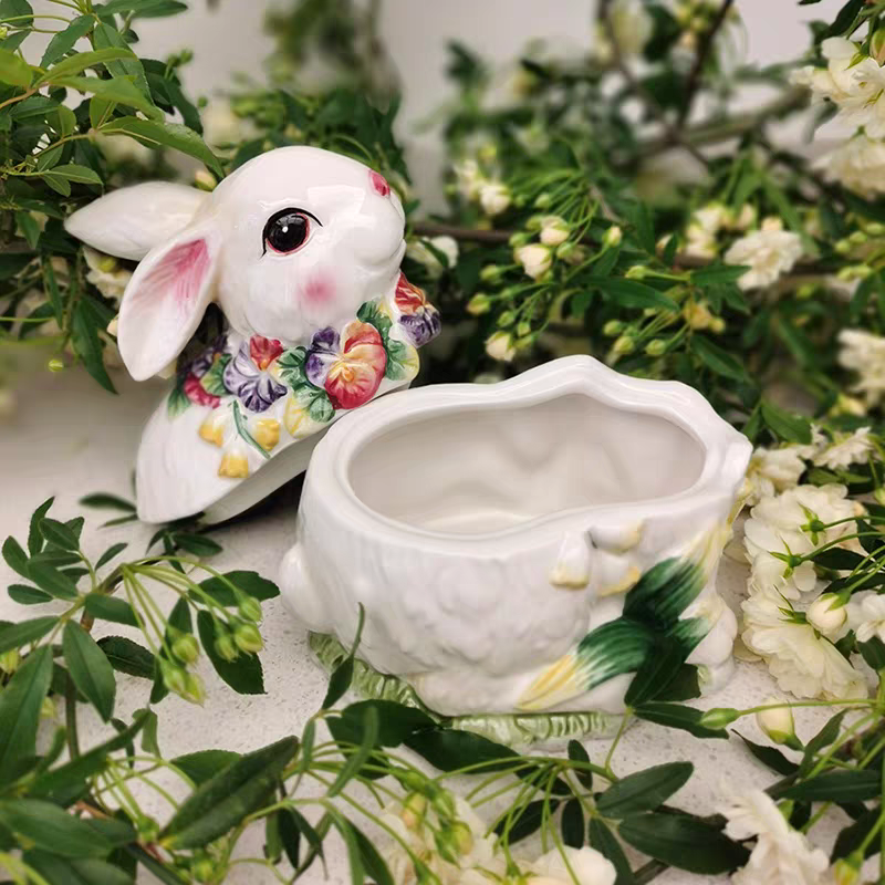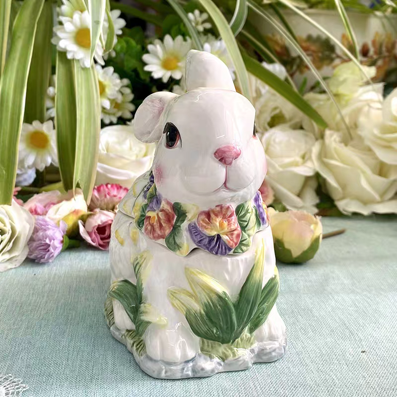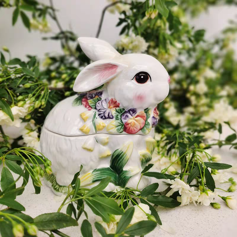 Adoptez notre délicieux duo de lapins en céramique, une création aussi adorable qu’utile, parfaite pour apporter une touche de douceur à votre intérieur. Composé d’une boîte à couvercle et d’un pot à bec verseur, cet ensemble allie parfaitement esthétique et praticité.